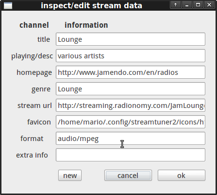 You can see the standard title and genre fields here. But also a few internally kept infos. For example the "url" field contains the actual pls/m3u/server address. While the "format" can list a non-standard audio compression type.
