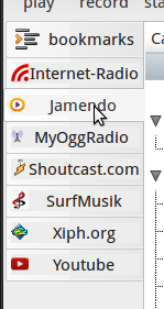 The tabs in the main window represent the music directory channels/services. Each lists categories/genres and their associated radios/streams.